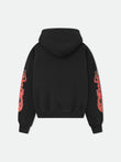 Long sleeve cotton heavyweight hoodie with Rhude "Mesa Stallion" graphic designs printed on the front and sleeves, with a clean back. Featuring a kangaroo front pocket and dropped shoulders. Each piece is unique and print distressing my vary per style.