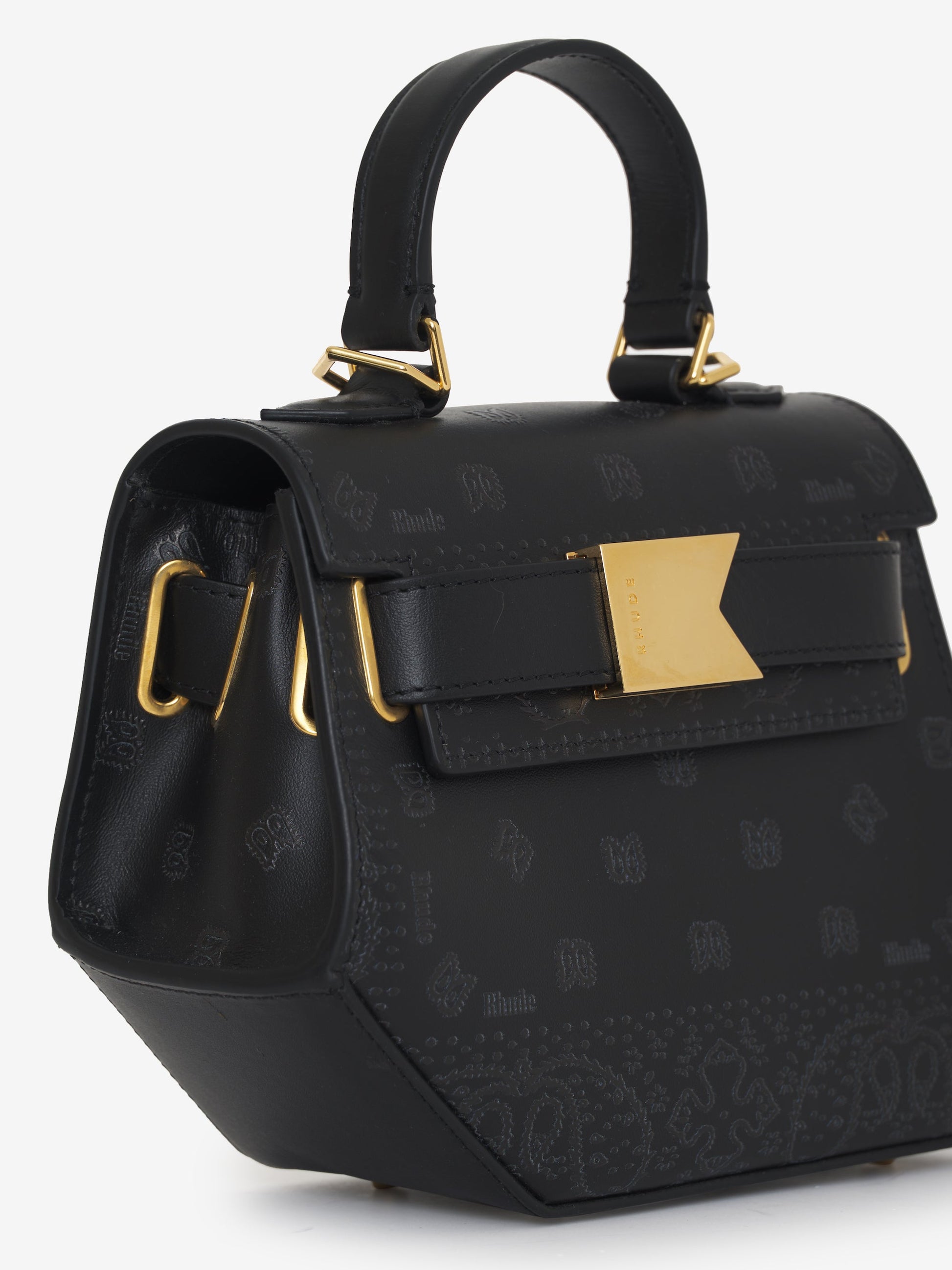 Add a touch of elegance and sophistication with our premium Leather mini bag with RHUDE bandana emboss. Featuring a fully lined interior compartment, dual mixed media and gold straps, gold feet, and gold hardware.