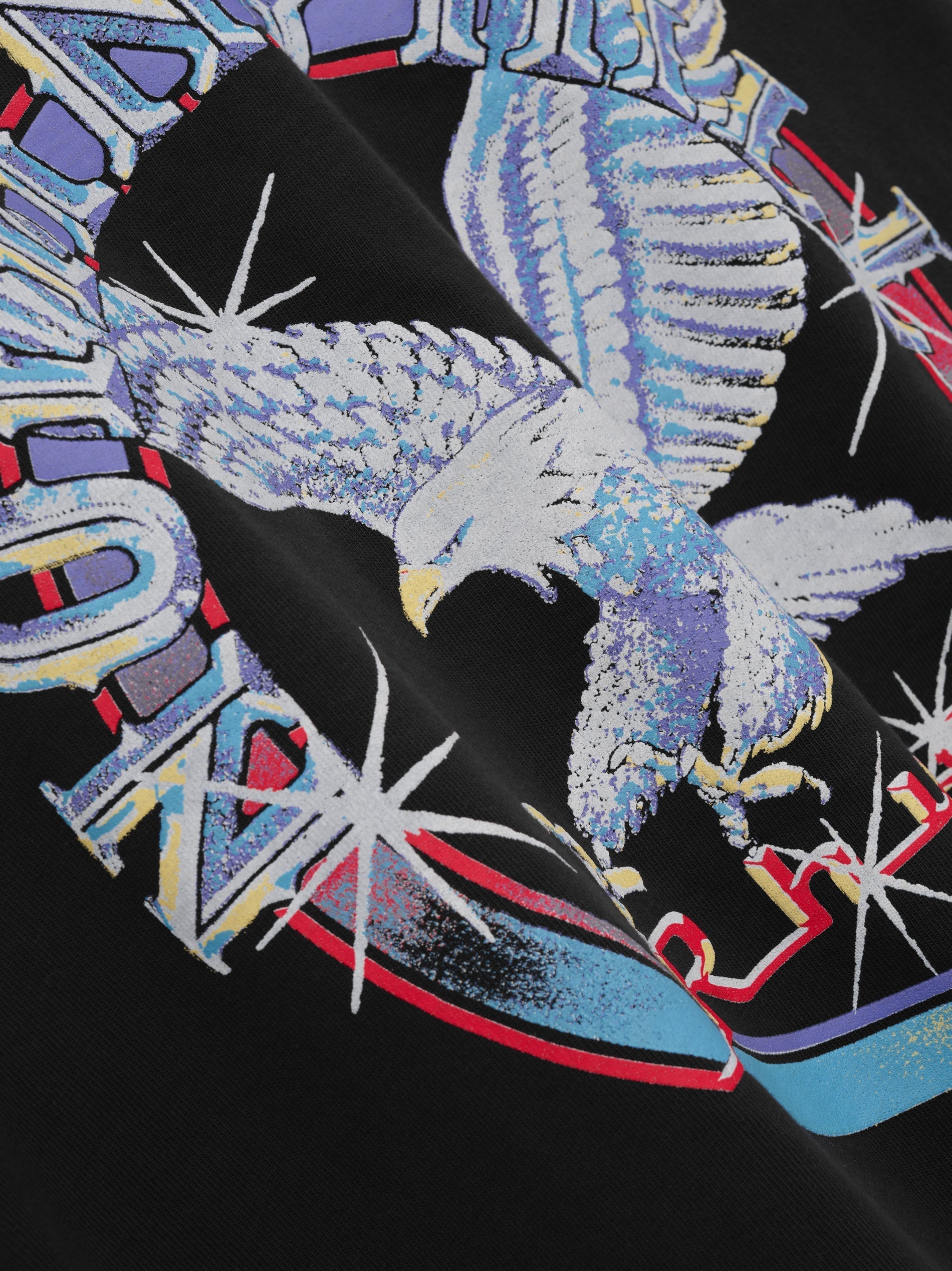 Custom-fit vintage wash cotton long sleeve tee-shirt with Rhude "Notting Hill Eagle" inspired designs printed at front and sleeves, with a clean back.