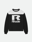 Custom-fit vintage wash cotton long sleeve tee-shirt with Rhude racing panel graphics printed at front, with a clean back.