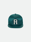 Heavyweight vintage cap with Rhude "R" Batting inspired design on the front. Features an adjustable strap at the back, so you can adjust the fit to your preference, and green under brim.