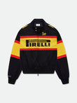 Premium racing jacket that showcases our collaboration between Rhude x Pirelli, with co-branded logos thoughtfully placed throughout. Designed in signature black, yellow, and red colors. Offers twin front pockets for added convenience. Custom Rhude hardware, ensuring a secure two-way zipper closure at the front, and features ribbed waist and cuffs for a stylish finish.