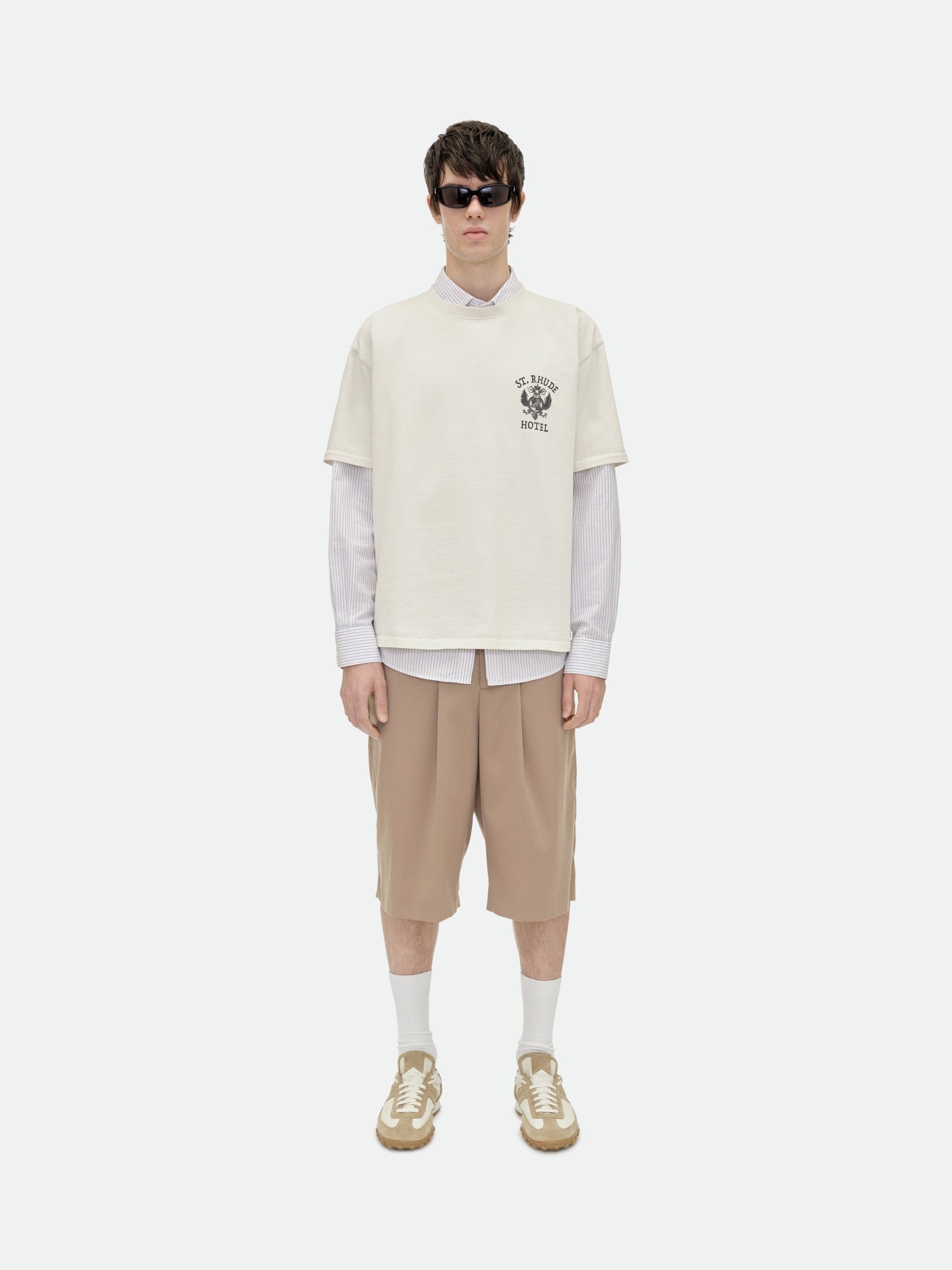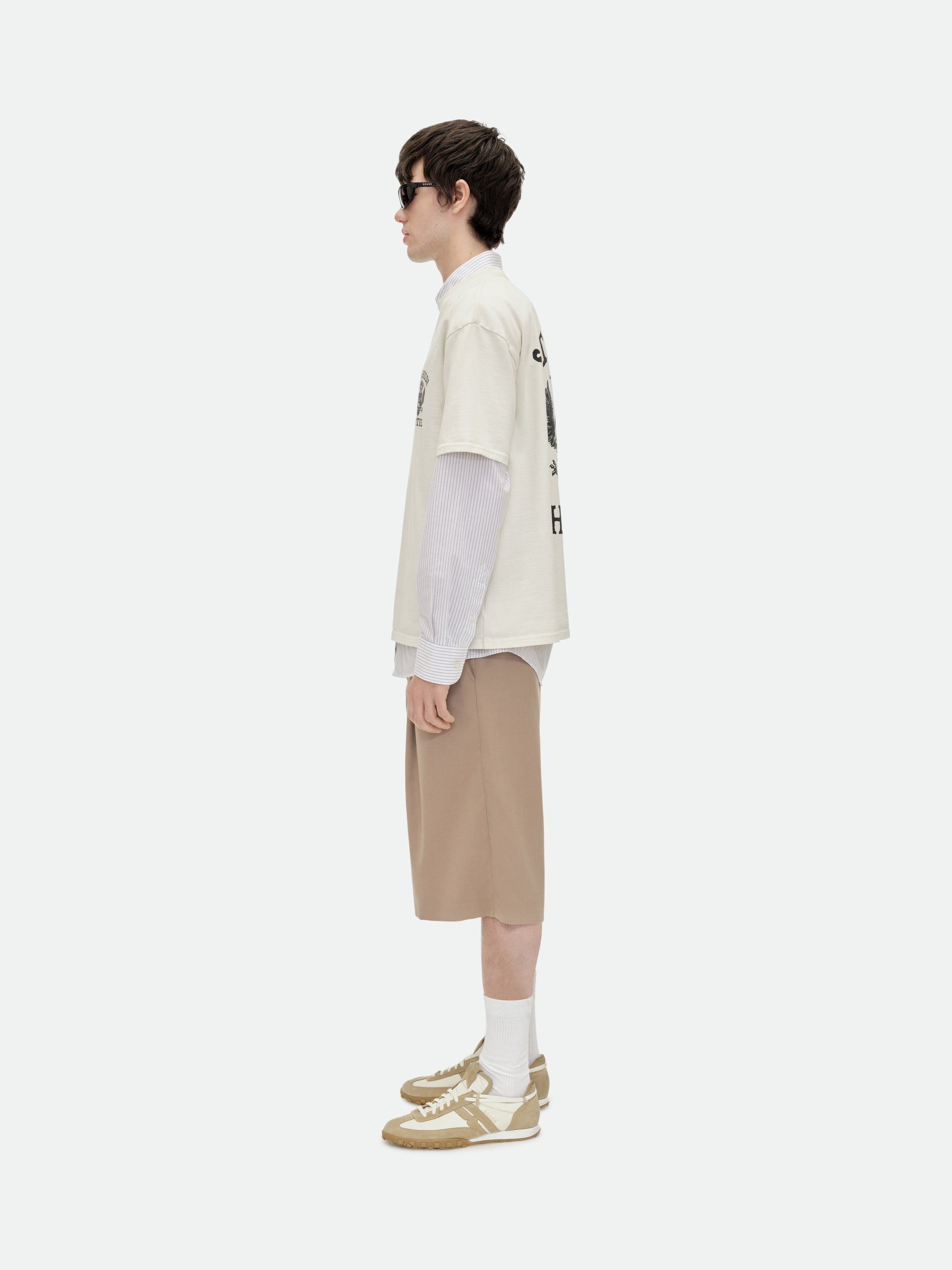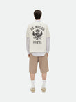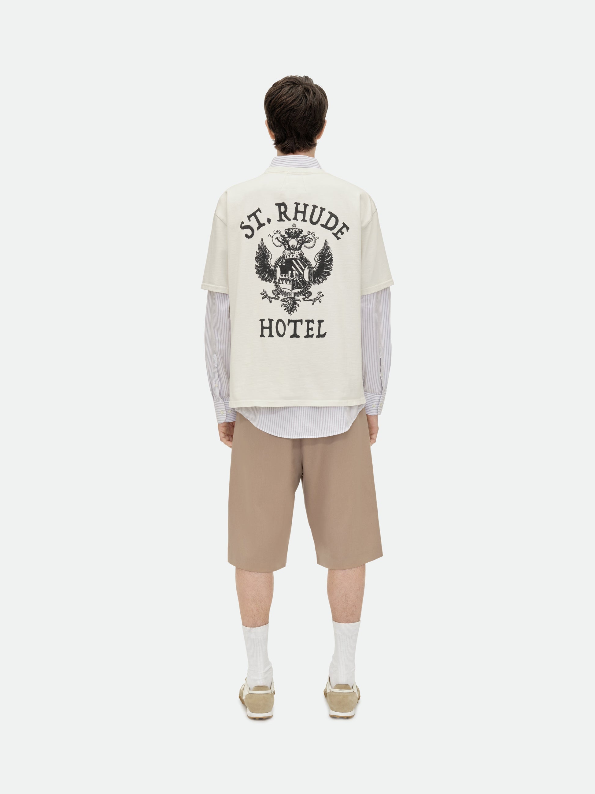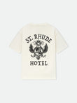 Custom-fit vintage wash cotton short sleeve tee-shirt with Rhude seal logo graphics graphics printed at front and back.