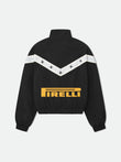 Premium flyweight poly jacket, co-branded Rhude x Pirelli logos placed on the front and back. Features a dual-panel chevron construction aligned with stars, and a custom two-way Rhude flat zipper closure.