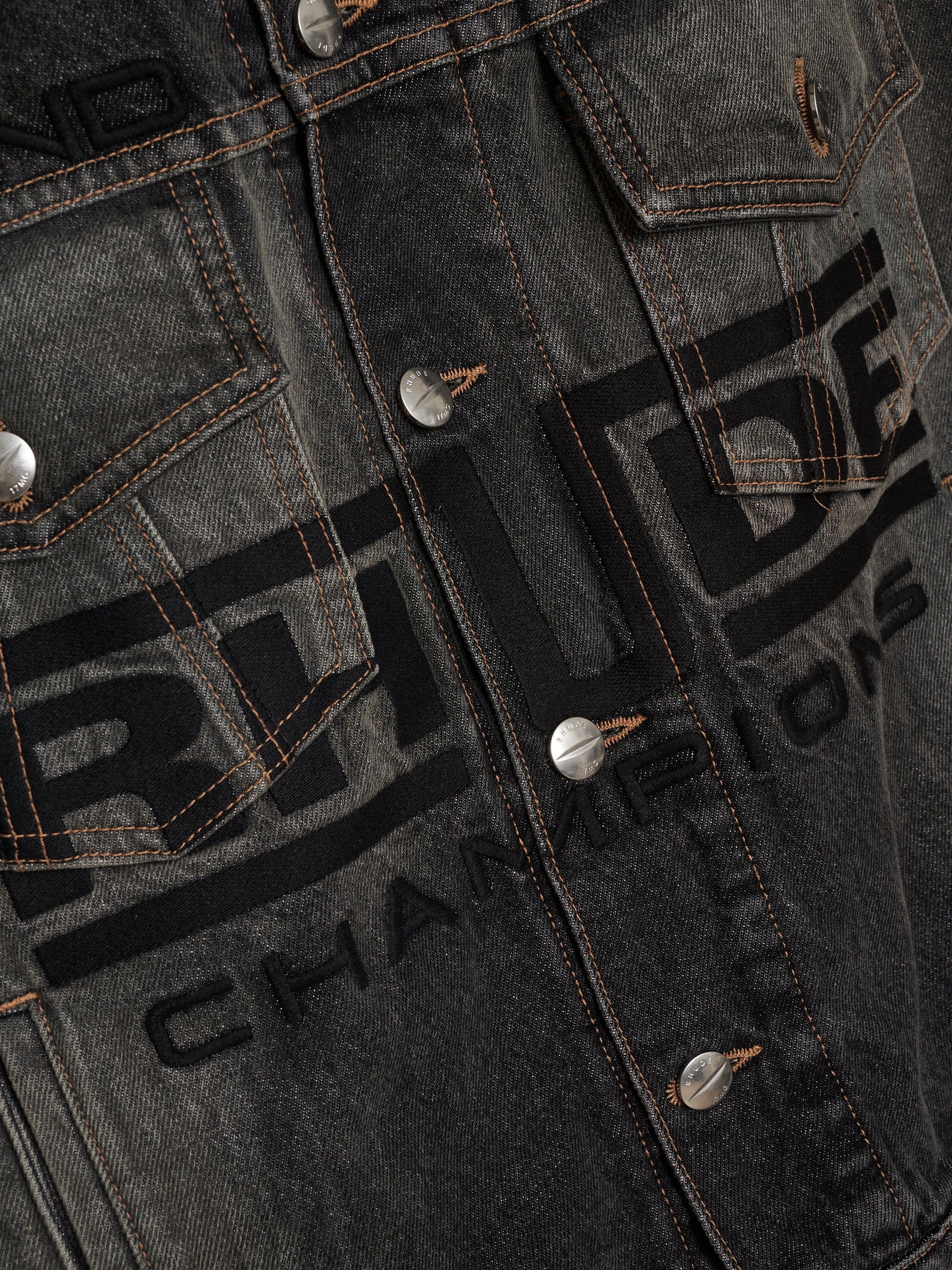 Expertly crafted with premium materials, this denim trucker jacket features RHUDE logo placed on front, embroidery details, twin pockets, and side pockets at the front. Custom Rhude button closures add unique style to this handcrafted piece. Made in Los Angeles.