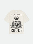 Custom-fit vintage wash cotton short sleeve tee-shirt with Rhude "Youth of America" graphics printed at front, with a clean back.